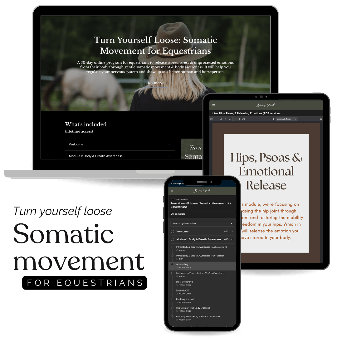 An online program for equestrians to release stored stress & unprocessed emotions from their body through gentle somatic movement & body awareness.